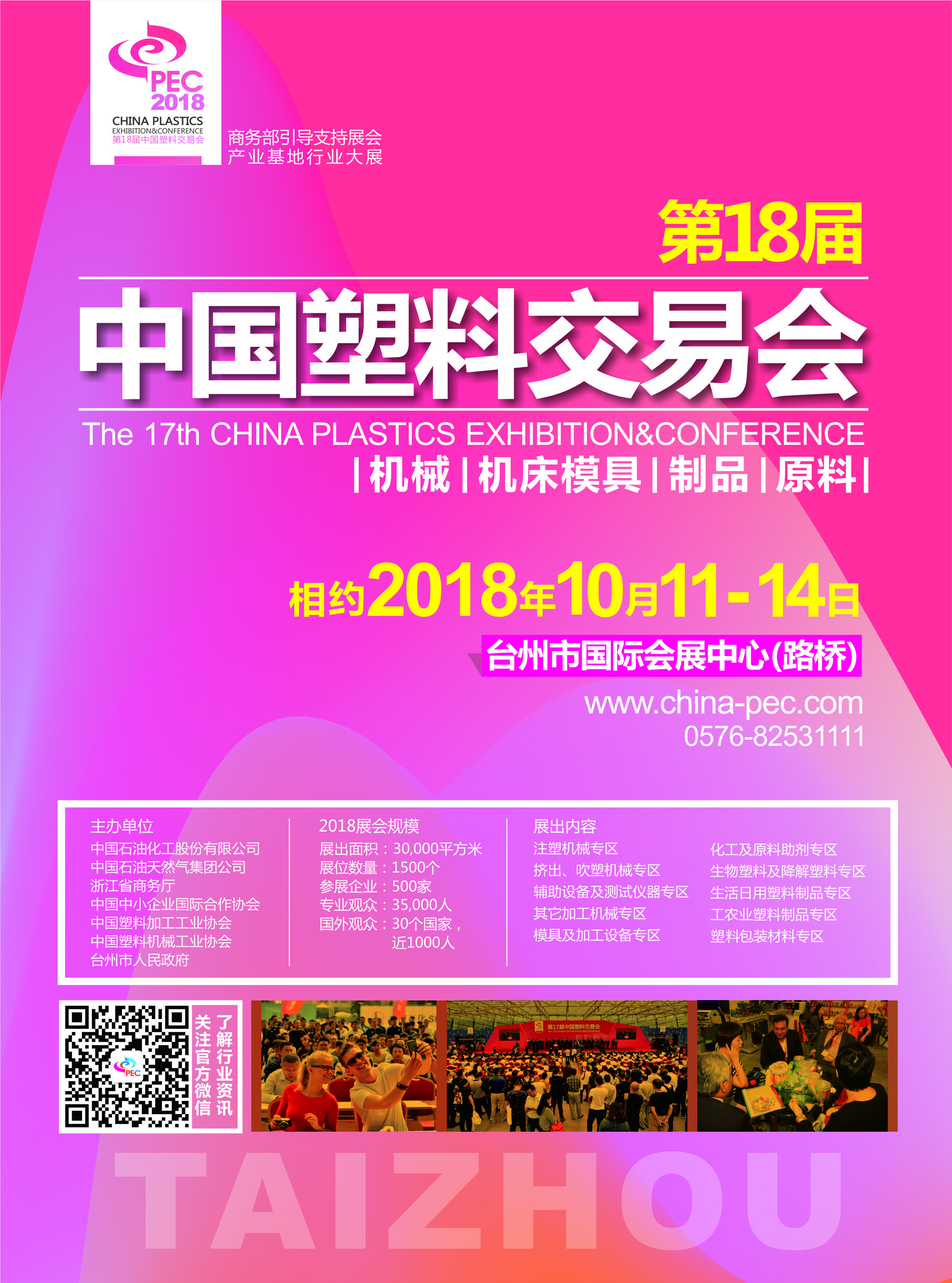 第十八屆中國塑料交易會(huì)設(shè)原料、機(jī)械、模具、制品四大展館,展覽面積約30000平方米,展位1500個(gè),預(yù)計(jì)將有500家企業(yè)參展。展會(huì)同期舉辦一帶一路,合作共贏-智能制造中德高峰論壇。