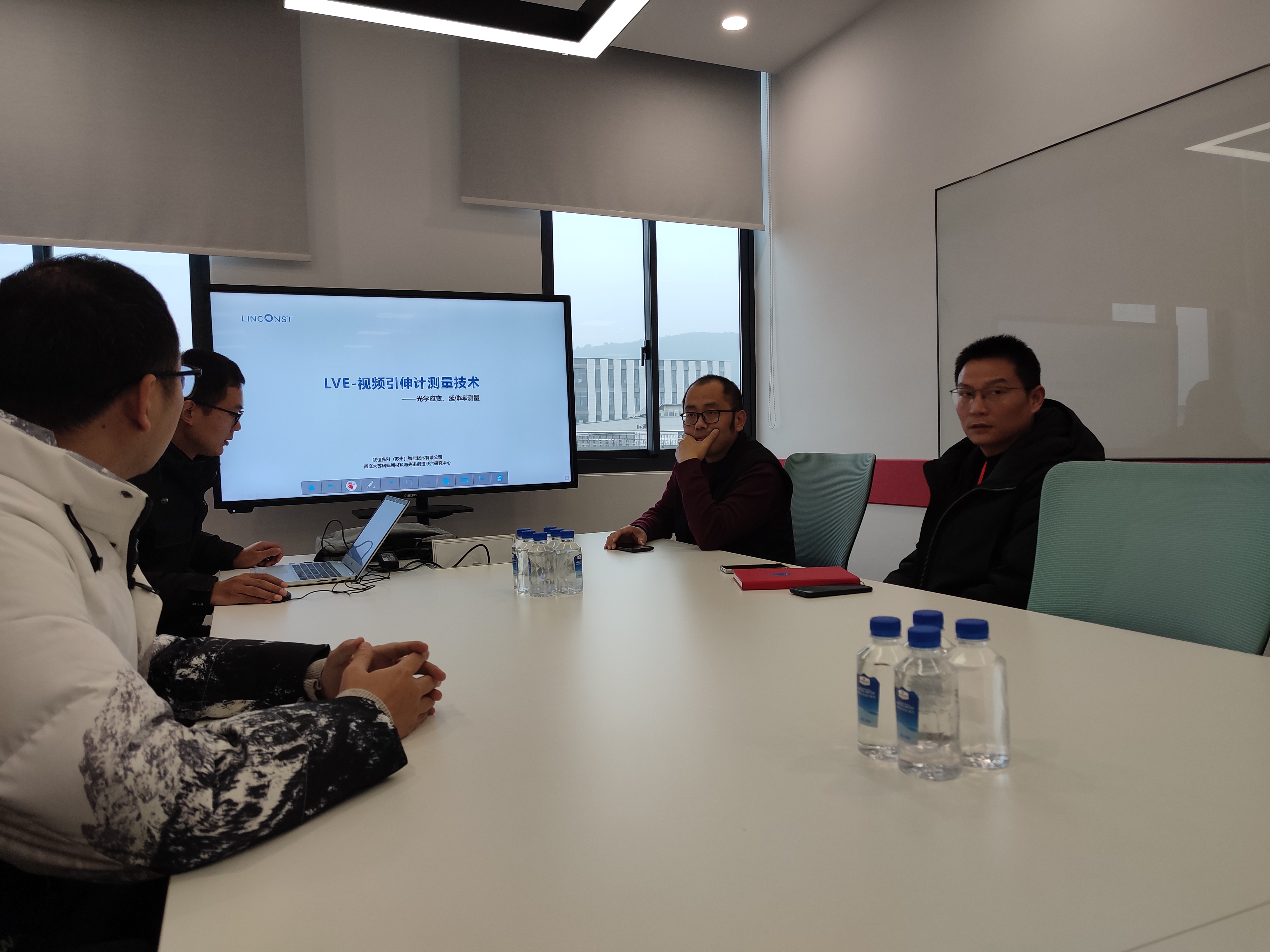 現(xiàn)場展示視頻引伸計的操作流程,我們銷售及技術(shù)團隊在認真觀摩學(xué)習(xí)。