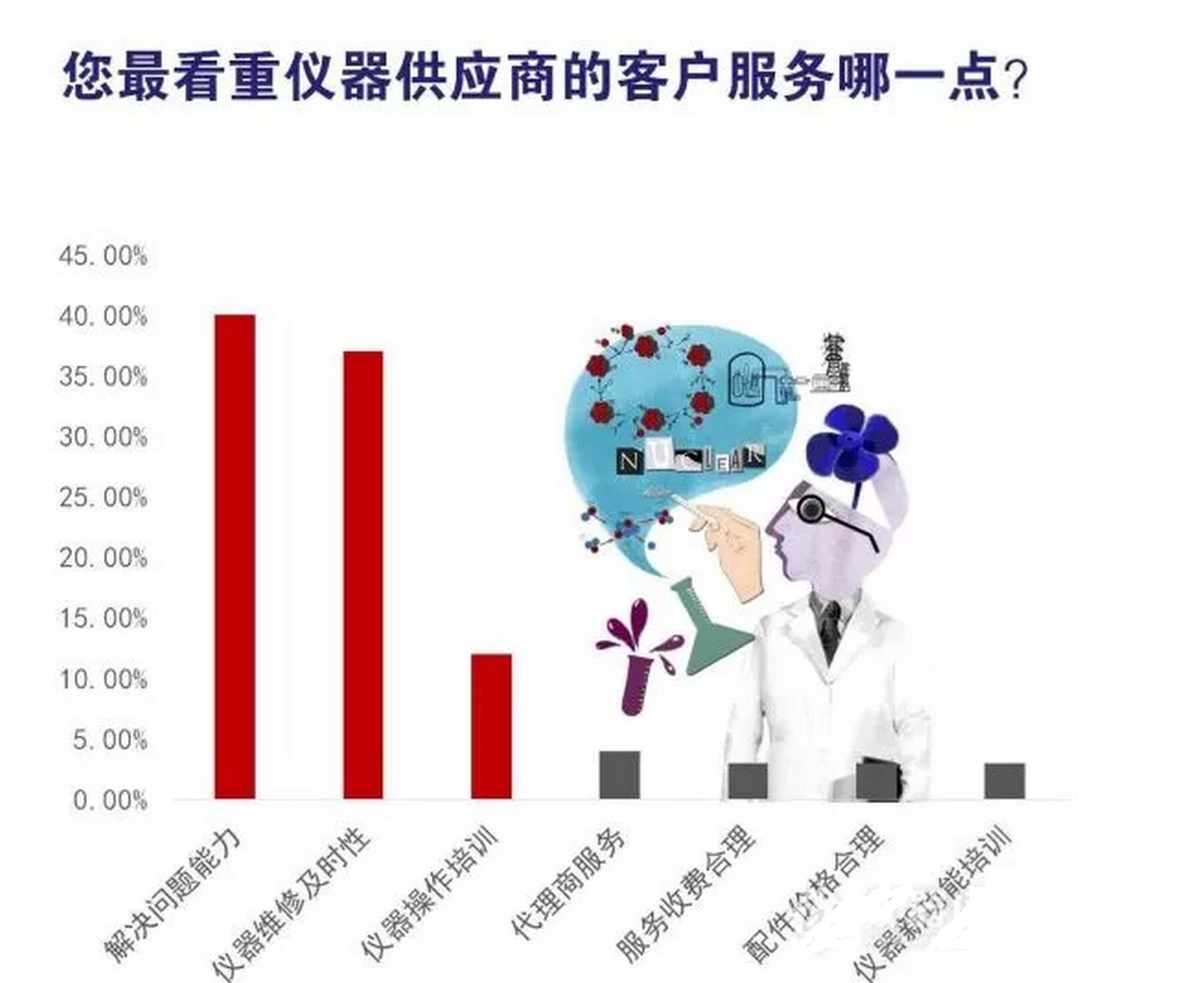 小編在前期調(diào)查中發(fā)現(xiàn),儀器用戶對(duì)于儀器供應(yīng)商售后的各項(xiàng)服務(wù)中,最看中的分別是解決問(wèn)題的能力、儀器維修及時(shí)性及儀器操作培訓(xùn)三點(diǎn)。